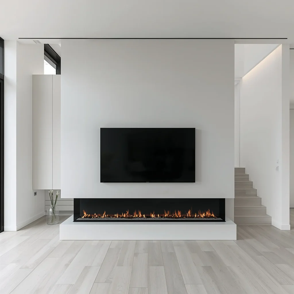 What makes this combo work so well? The clean lines and minimal visual clutter. You’re not dealing with bulky mantels or ornate surrounds – just pure, modern elegance. I’ve seen this setup work particularly well in open-concept homes where you want the fireplace to feel integrated rather than dominating the space.