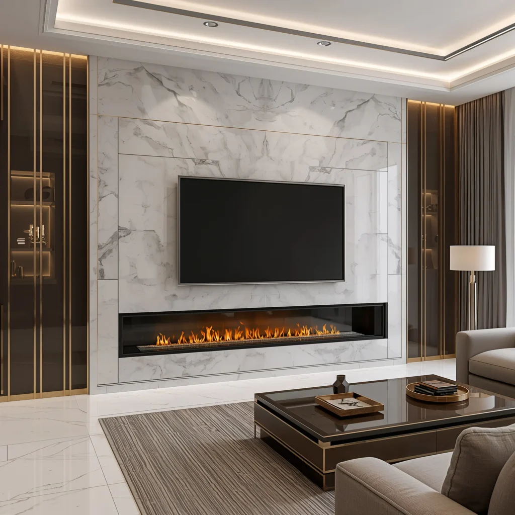 Luxury Marble Fireplace TV Accent Wall