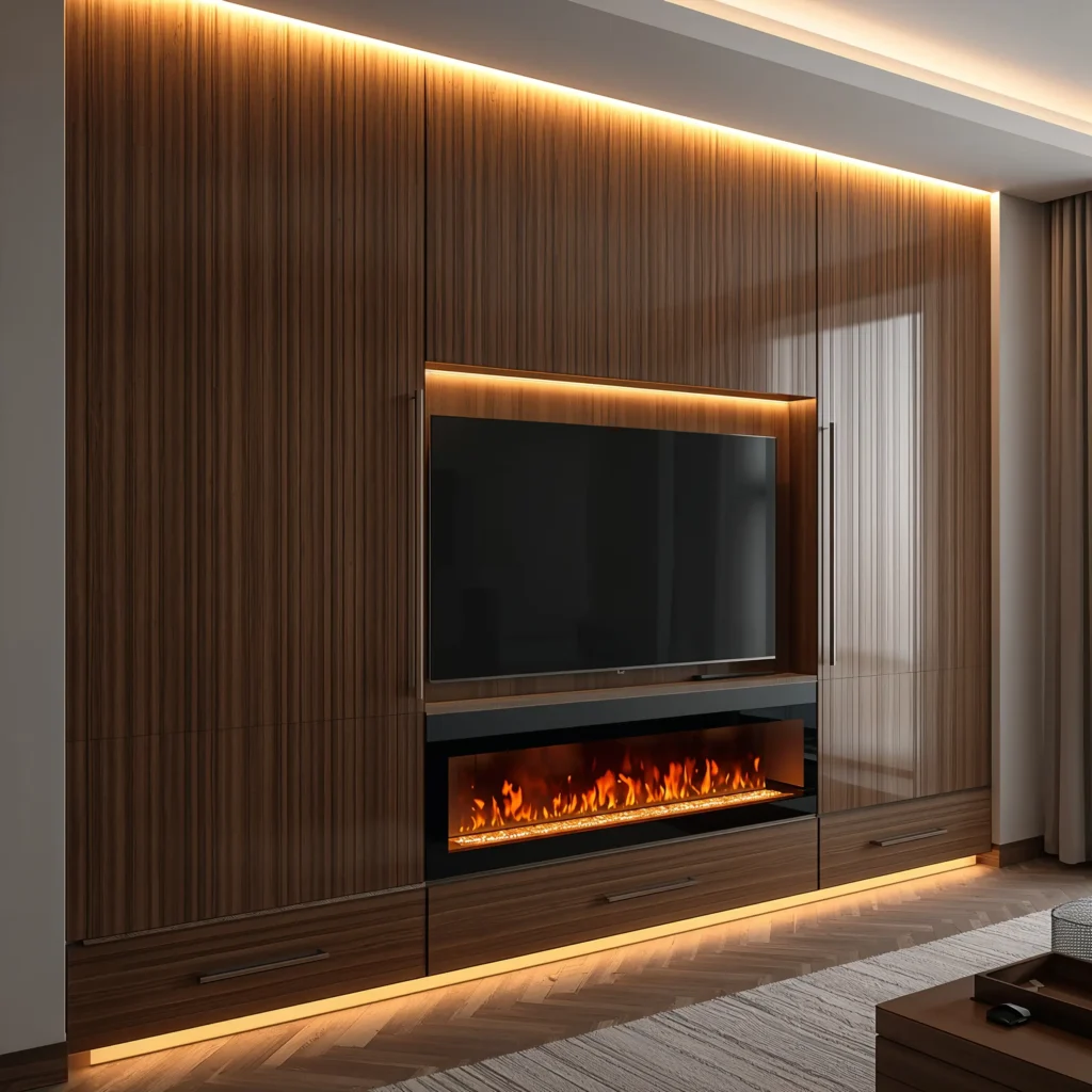 I love this approach because it works in virtually any space, regardless of size. The trick is choosing elements that complement rather than compete with each other. A simple rectangular fireplace insert paired with a wall-mounted TV of similar proportions creates instant visual cohesion.