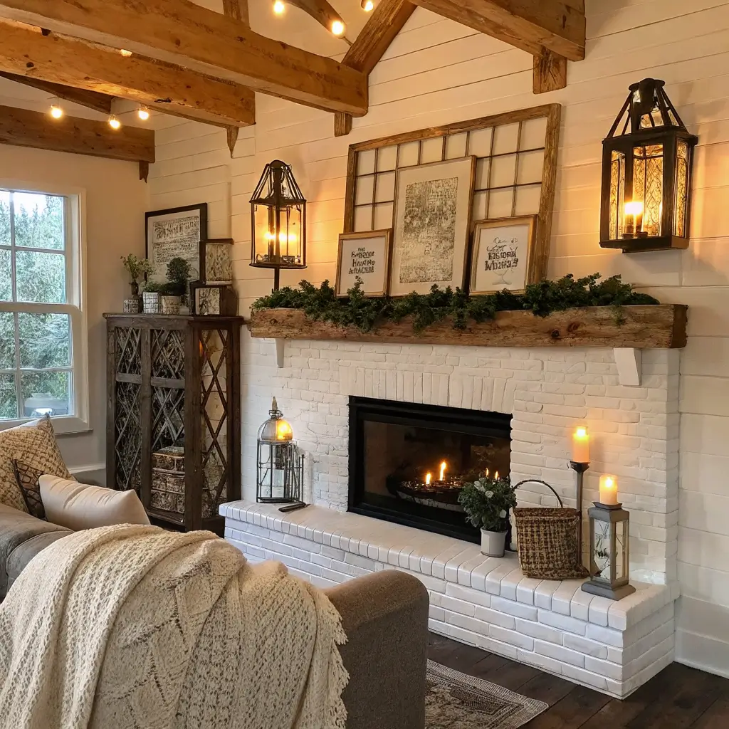 Cozy Farmhouse Fireplace Mantle Decor