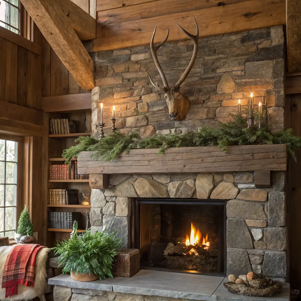 I’ve found that natural and neutral colors work best with wooden beam mantles. Think whites, creams, soft grays, and other earth tones that let the wood be the star. Greenery is your best friend here – it adds life and color without overwhelming the rustic vibe.