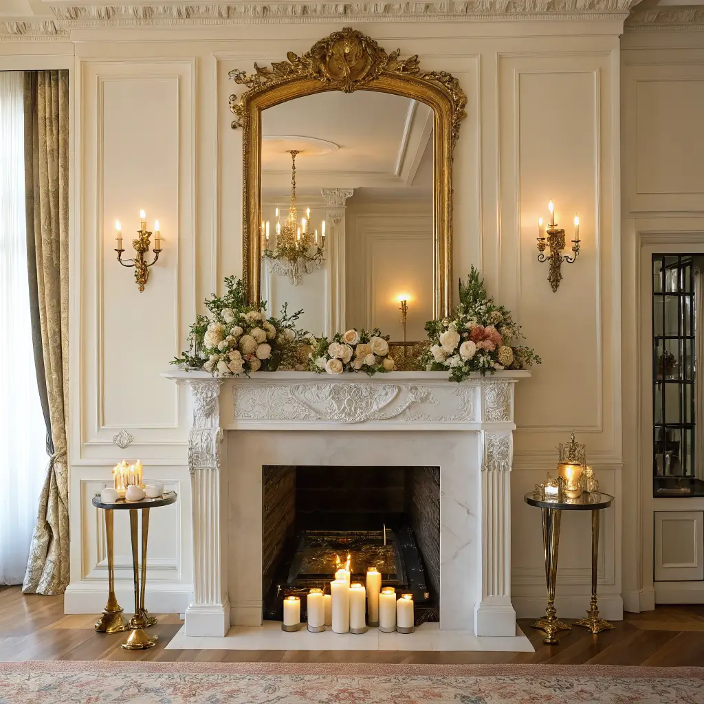 Elegant Mirror Centerpiece Mantle Design