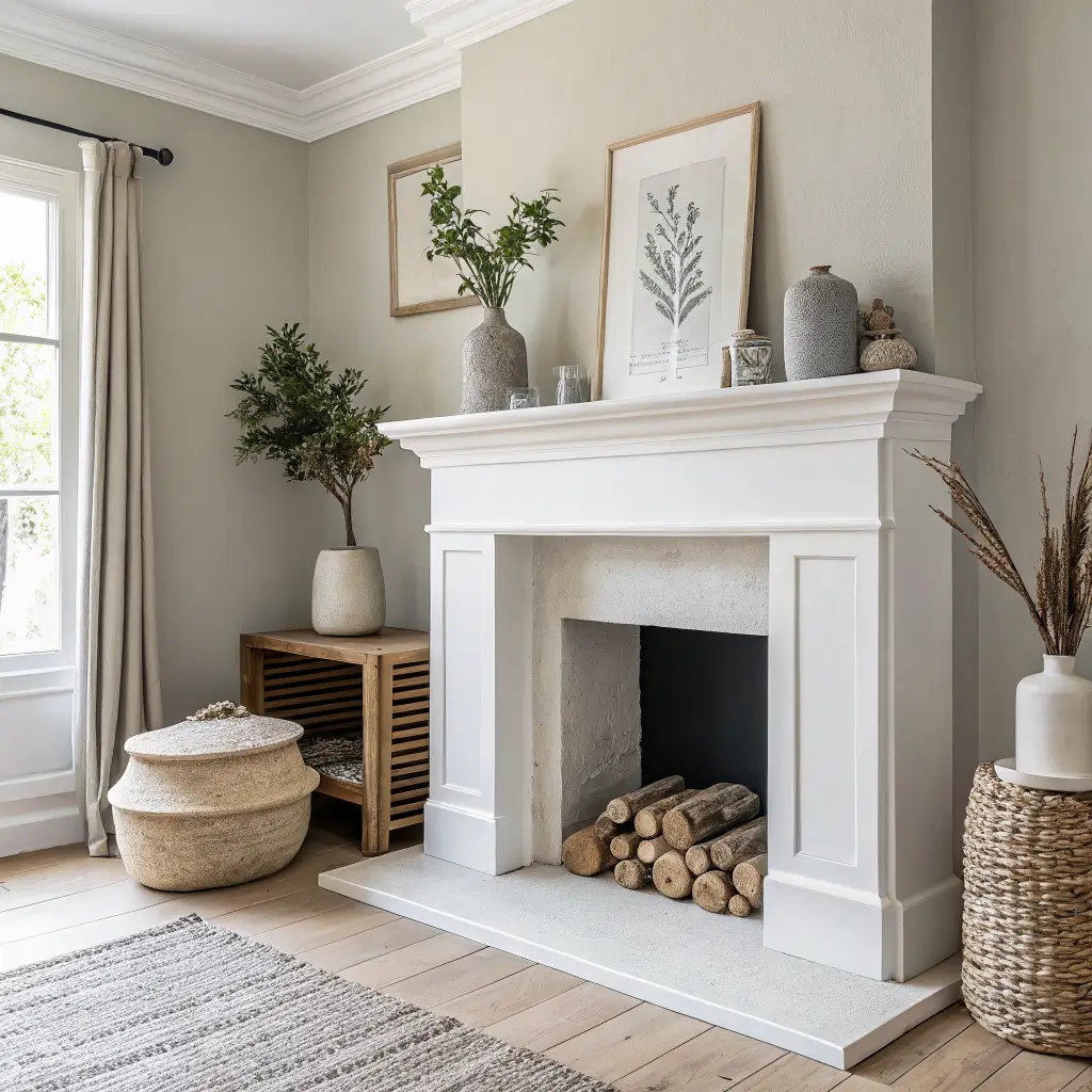 Minimalist White Fireplace Mantle Styling