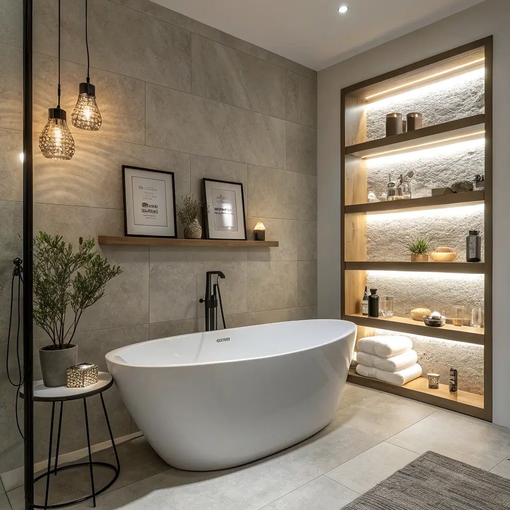 Ever tried finding your shampoo in a dimly lit shower? LED-lit floating shelves are a game changer. The integrated lighting not only helps you see what you’re grabbing but also creates this gorgeous ambient glow.