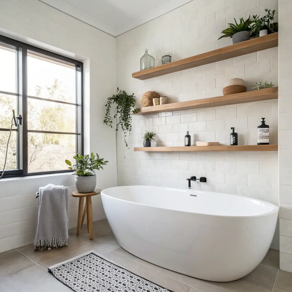 Freestanding tubs are stunning, but where do you put your stuff? Floating shelves above or beside a freestanding tub solve this problem beautifully. They provide storage without compromising that sculptural, standalone look you paid good money for.