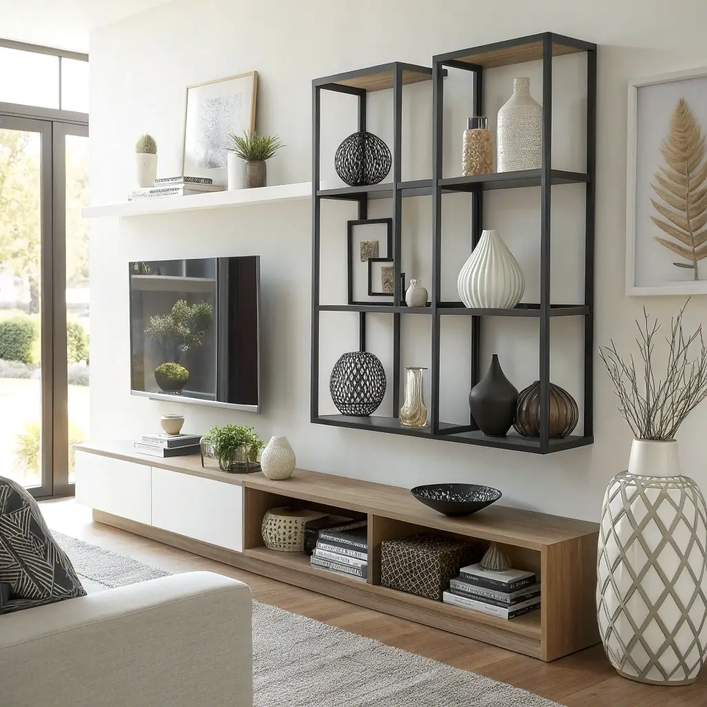 Time to get edgy—literally. Geometric arrangements turn floating shelves into contemporary art installations that make your space look like it belongs in a design magazine. This style celebrates clean lines, bold shapes, and mathematical precision that somehow feels effortless.