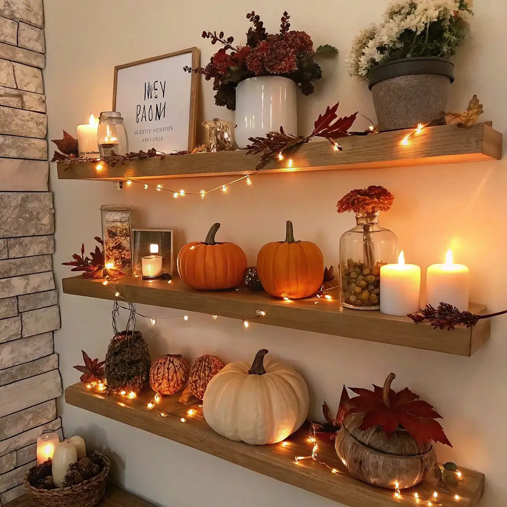 Consider adding subtle LED strip lighting under shelves for extra glow. This creates a floating effect and highlights objects from below. Choose warm white lights that complement candlelight rather than competing with it. The combination creates restaurant-quality ambiance in your own home.