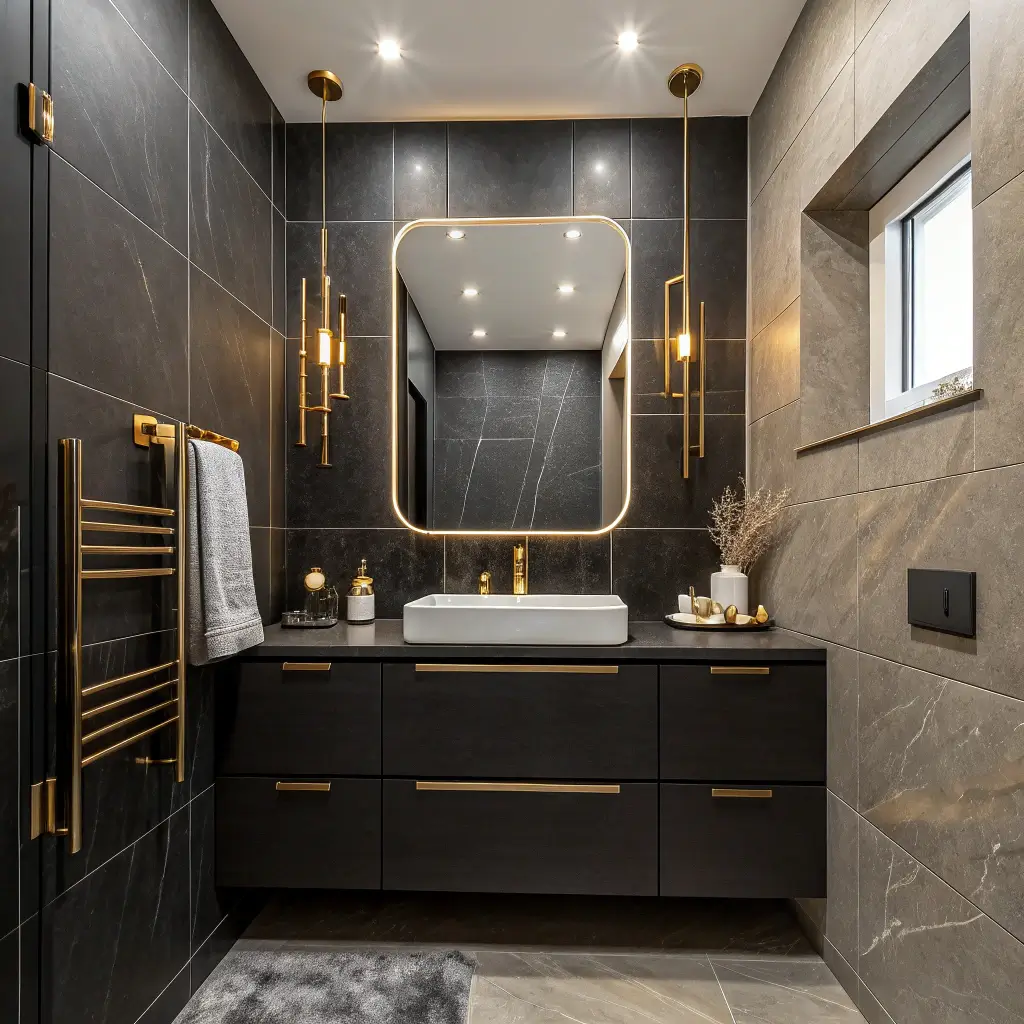 The key to nailing this look? Balance and contrast. You need light elements to prevent your bathroom from feeling like a cave. Think white or light gray walls, plenty of natural light, and maybe some brass or gold accents to warm things up.