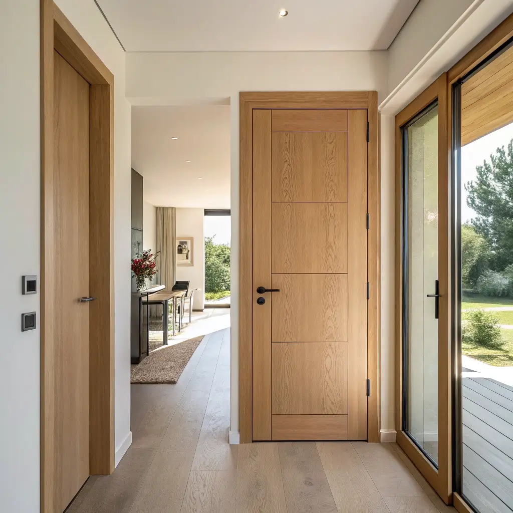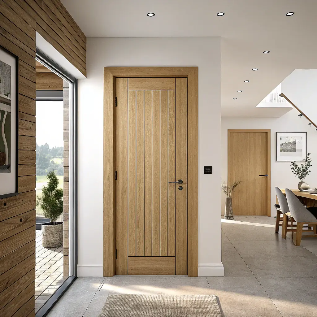 Sometimes you want that cabin-in-the-woods vibe without actually living in the woods. Rustic oak flush doors with natural finishes bring organic warmth while maintaining clean, modern lines.