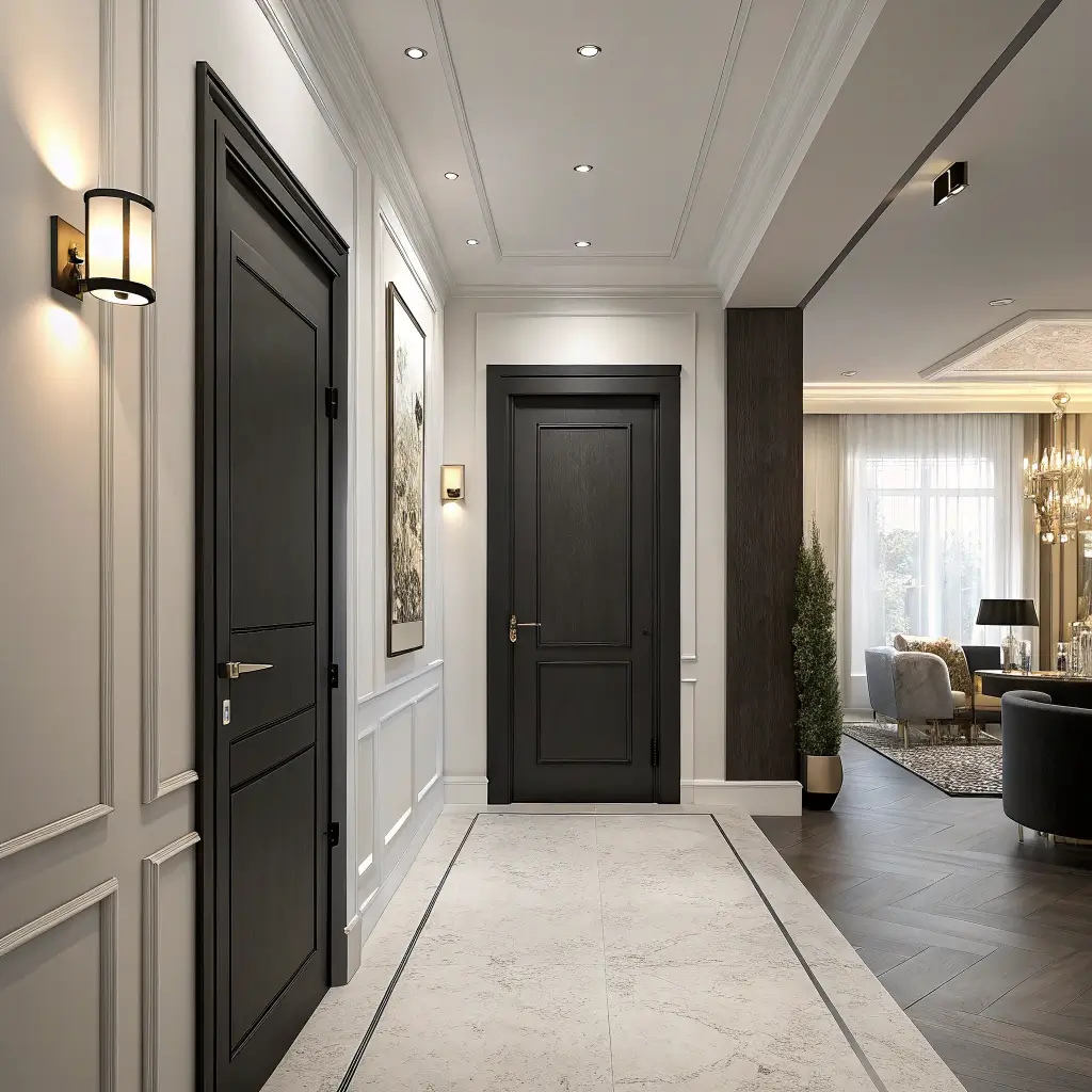 Black doors are having a major moment, and honestly? I’m here for it. Black matte flush doors with concealed hinges create this stunning, monolithic appearance that works surprisingly well in both light and dark spaces.