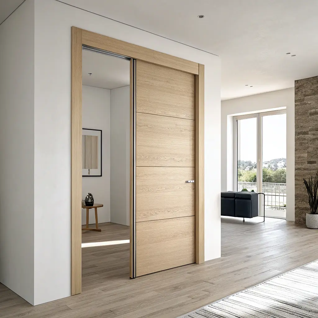 Living in a small space? Pocket flush doors are your new best friend. They slide completely into the wall cavity, freeing up valuable square footage and eliminating door swing clearance issues.