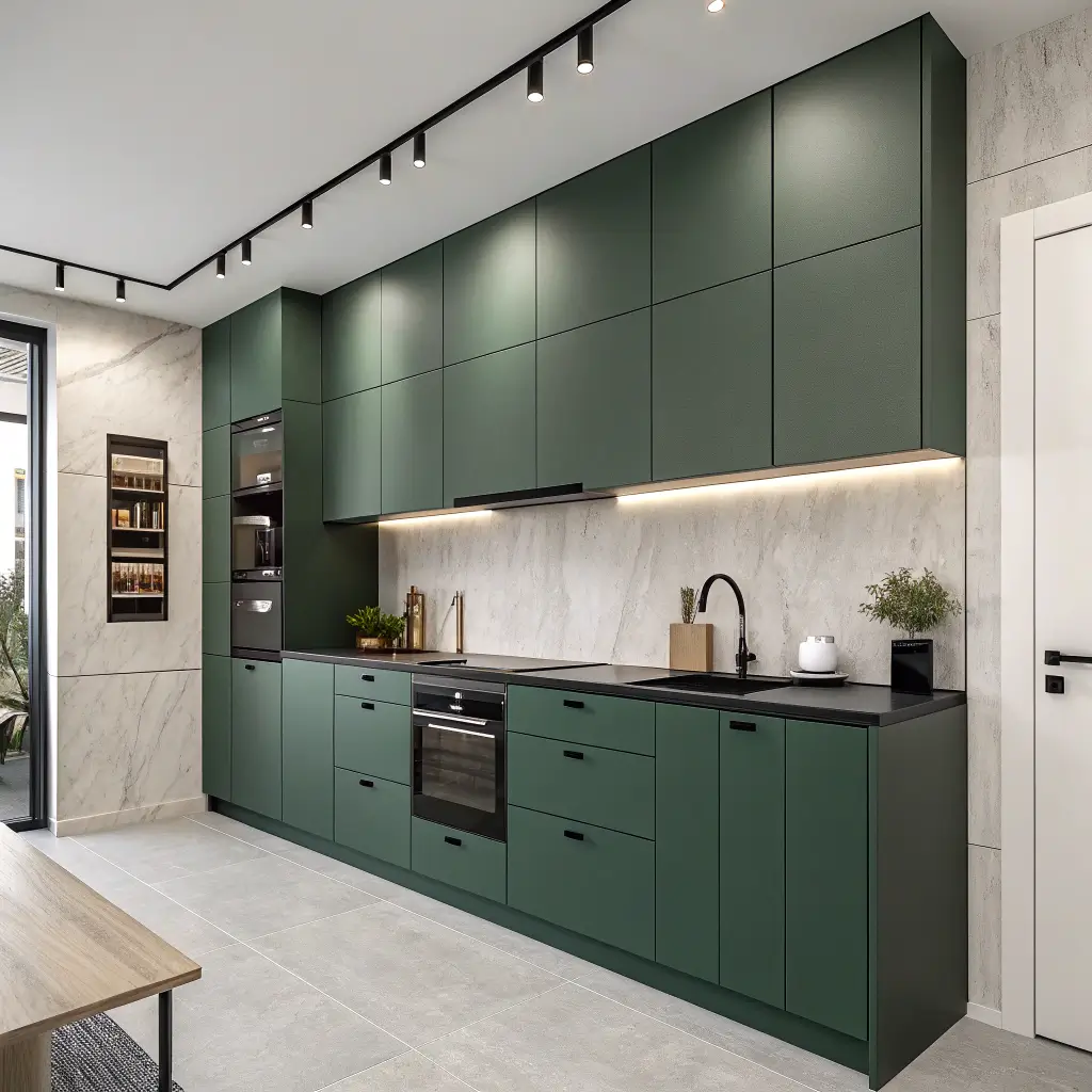 Minimalist Kitchen with Forest Green Cabinets
