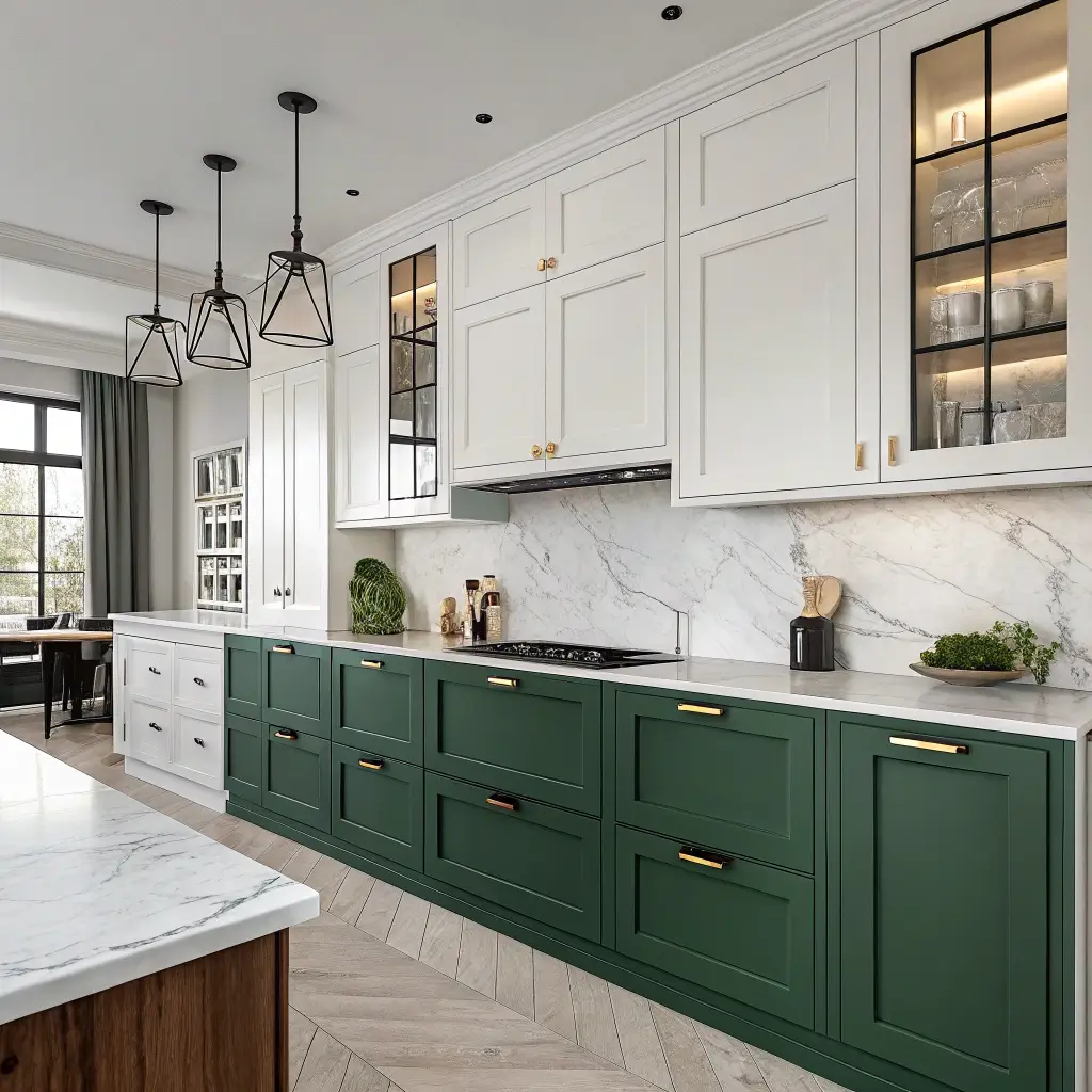 Two-Tone Kitchen Cabinets Featuring Forest Green