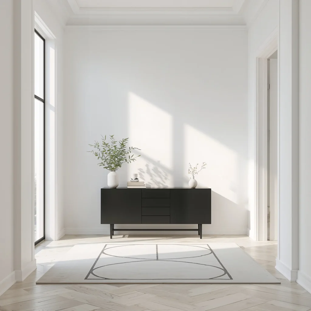 Stick with whites, grays, and blacks as your foundation. I know, I know – sounds boring, right? Wrong! The magic happens when you add one accent color. Mine’s a deep forest green through a single potted snake plant. It brings life without overwhelming the space.