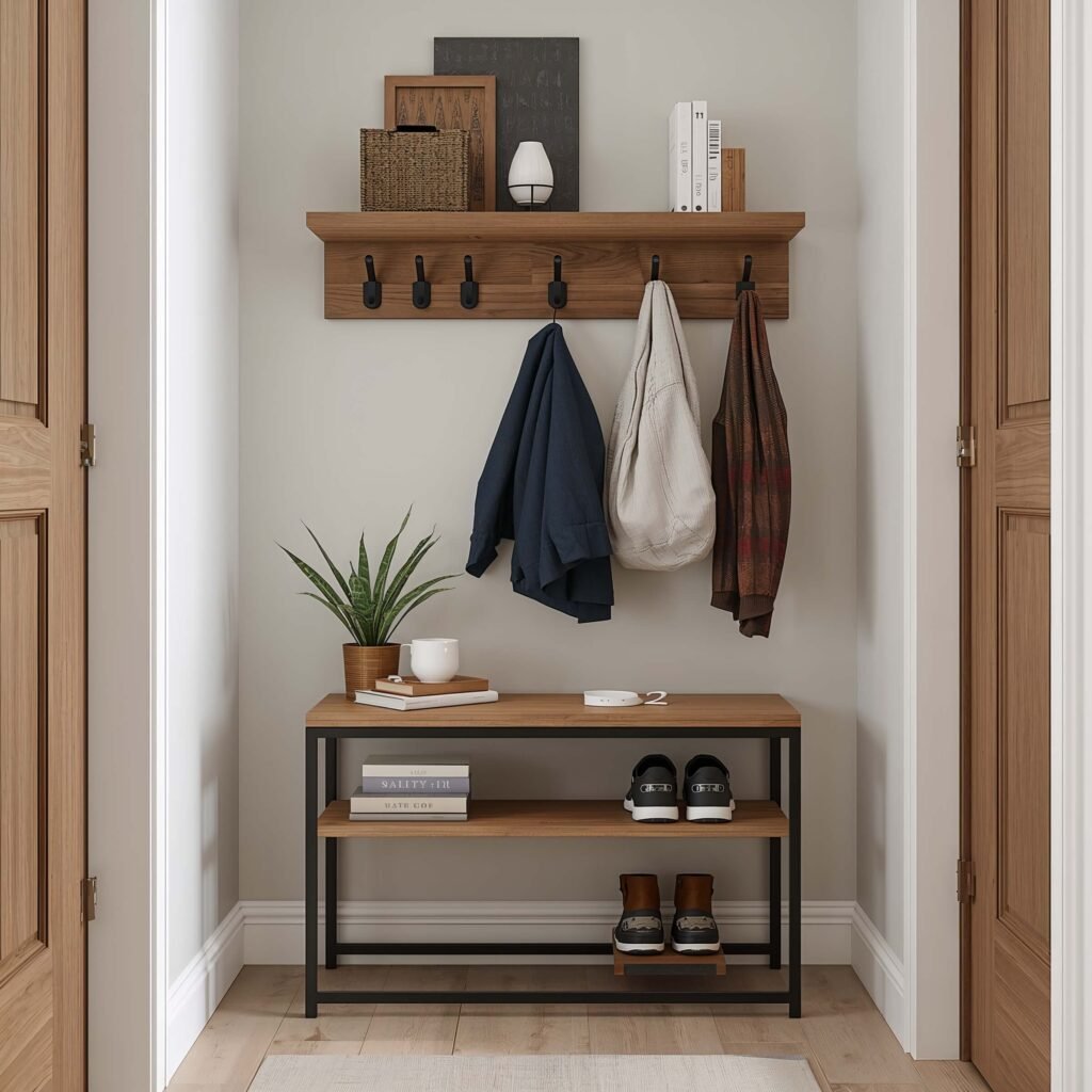 Mount a narrow floating shelf at shoulder height for mail and keys. Below it, add hooks for bags. Above it, install another shelf for decorative items. You’ve just tripled your storage without eating up floor space.
