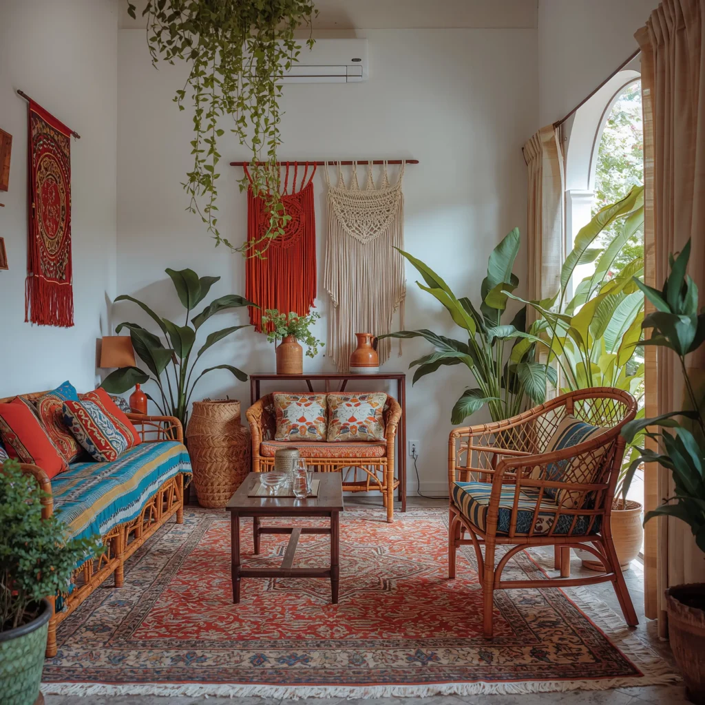 Boho thrives on texture overload â€“ in the best way. Macramé wall hangings, woven baskets, jute rugs layered over runners – more is more! I have a friend whose boho foyer has seven different textures, and it works because they all share warm, earthy tones.