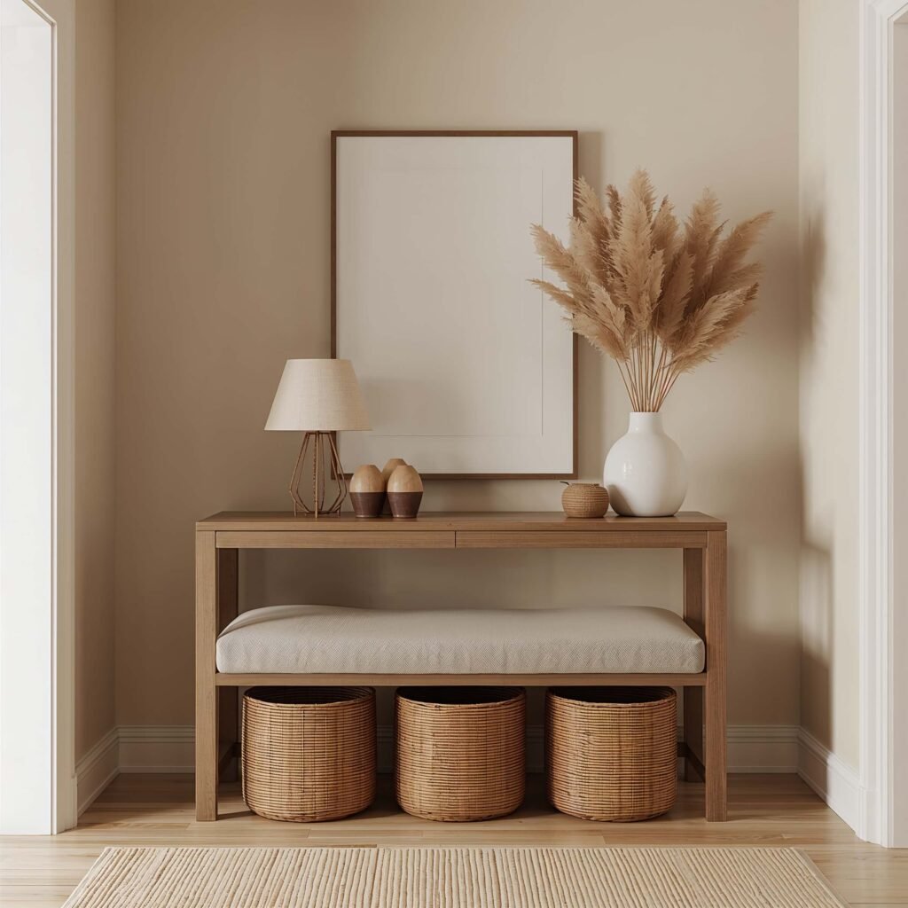 Warm neutrals create the most welcoming foyers—fight me on this. While cool grays had their moment, warm beiges, taupes, and creams make your entrance feel like a cozy embrace.