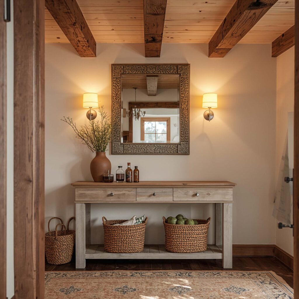There’s something about rustic wood that immediately says “welcome home.” Maybe it’s the natural imperfections or the way it ages gracefully, but wooden foyers never go out of style.