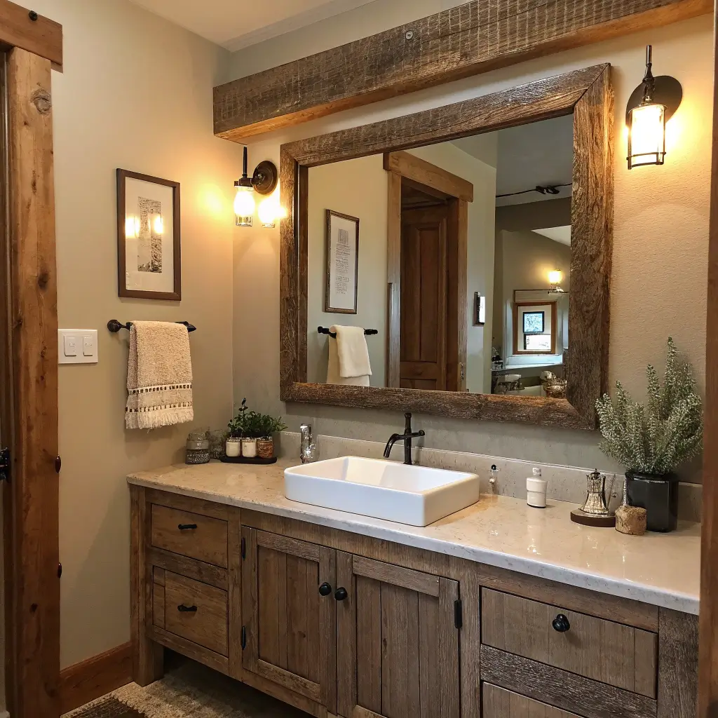 Who says bathrooms can’t have warmth and character? Rustic wooden frames bring that cozy cabin vibe right into your morning routine. And before you worry about moisture damage—modern sealants have totally solved that problem.