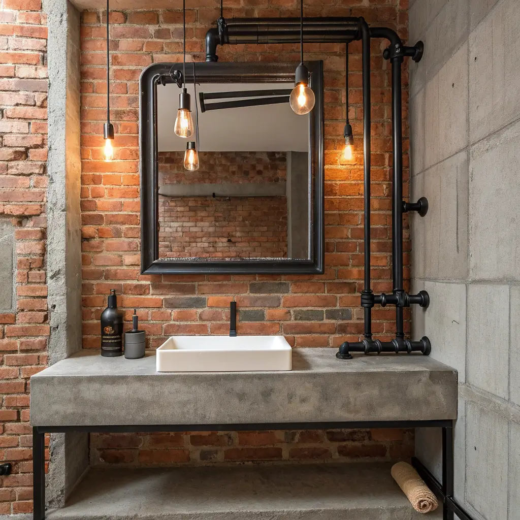 Industrial mirrors work especially well in bathrooms because, hello, you’re already surrounded by plumbing! It’s like the frame is celebrating what’s usually hidden behind walls. Plus, the substantial weight of pipe frames means they’re incredibly sturdy—no worrying about warping or breaking.