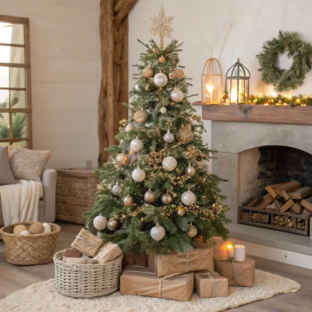 Start with warm white lights – and I mean loads of them. The French believe you can never have too many lights on a tree. Next, stick to a neutral palette: whites, creams, soft golds, and maybe touches of blush or sage.