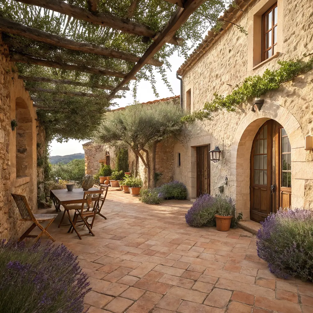 The color palette sticks to terracotta, warm grays, and deep greens with pops of purple and blue from flowering plants. I’ve seen people try to force this style with the wrong materials, and it just doesn’t work. Stick to natural stone, avoid anything too polished, and embrace the weathered, lived-in feeling.