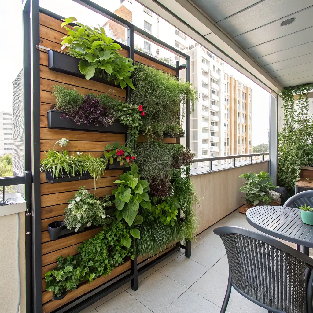 • Succulents in vertical planters for low-maintenance walls