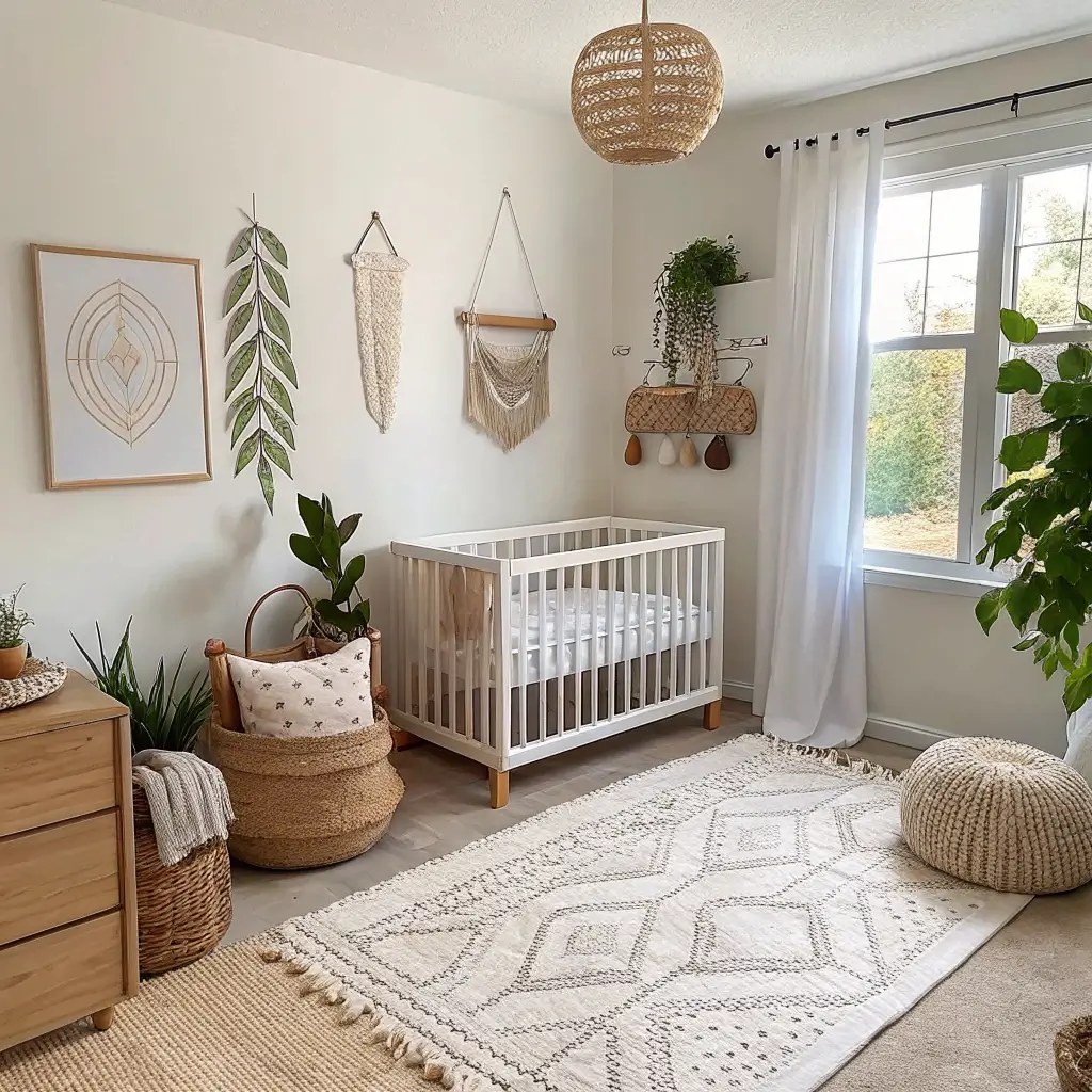 Wall hangings are your best friend in a boho nursery. Macramé, woven tapestries, or even a collection of baskets can create an amazing focal point. And don’t forget the plants – lots and lots of plants (fake ones work too if you’re plant-challenged like my sister).