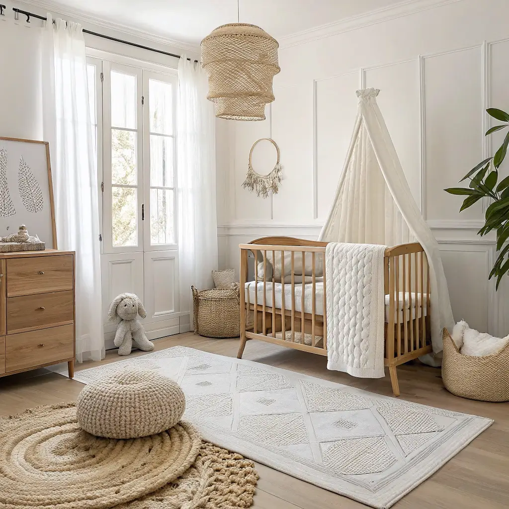 Who doesn’t want their baby’s room to feel like a warm hug? Natural elements bring this cozy, grounded feeling that synthetic materials just can’t match. I’m talking about wood, rattan, jute, and all those earthy materials that make you feel connected to nature.