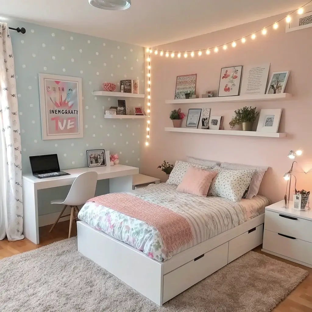 Start with a simple platform bed, add some floating shelves instead of bulky bookcases, and choose storage solutions that blend seamlessly into the walls. The beauty of minimalism? Your daughter can easily personalize it as she grows without major overhauls. One month she might add a single bold artwork, the next month she swaps it for a different one. The base stays the same, but the personality evolves.