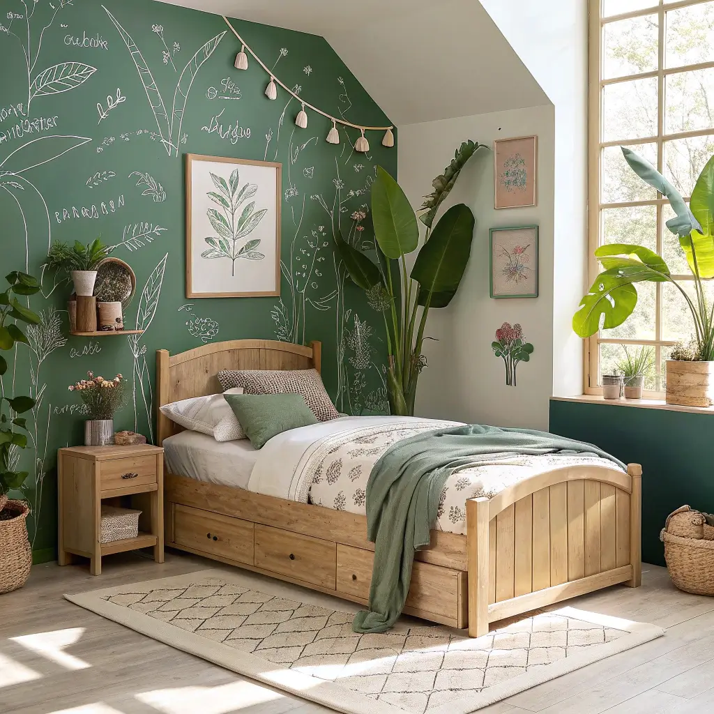 Start with an earthy color palette: sage greens, sky blues, warm browns, and sunset oranges. Incorporate real plants (succulents are basically indestructible, IMO) and natural materials like rattan, jute, and reclaimed wood. Wall murals of forests, mountains, or oceans create stunning focal points.