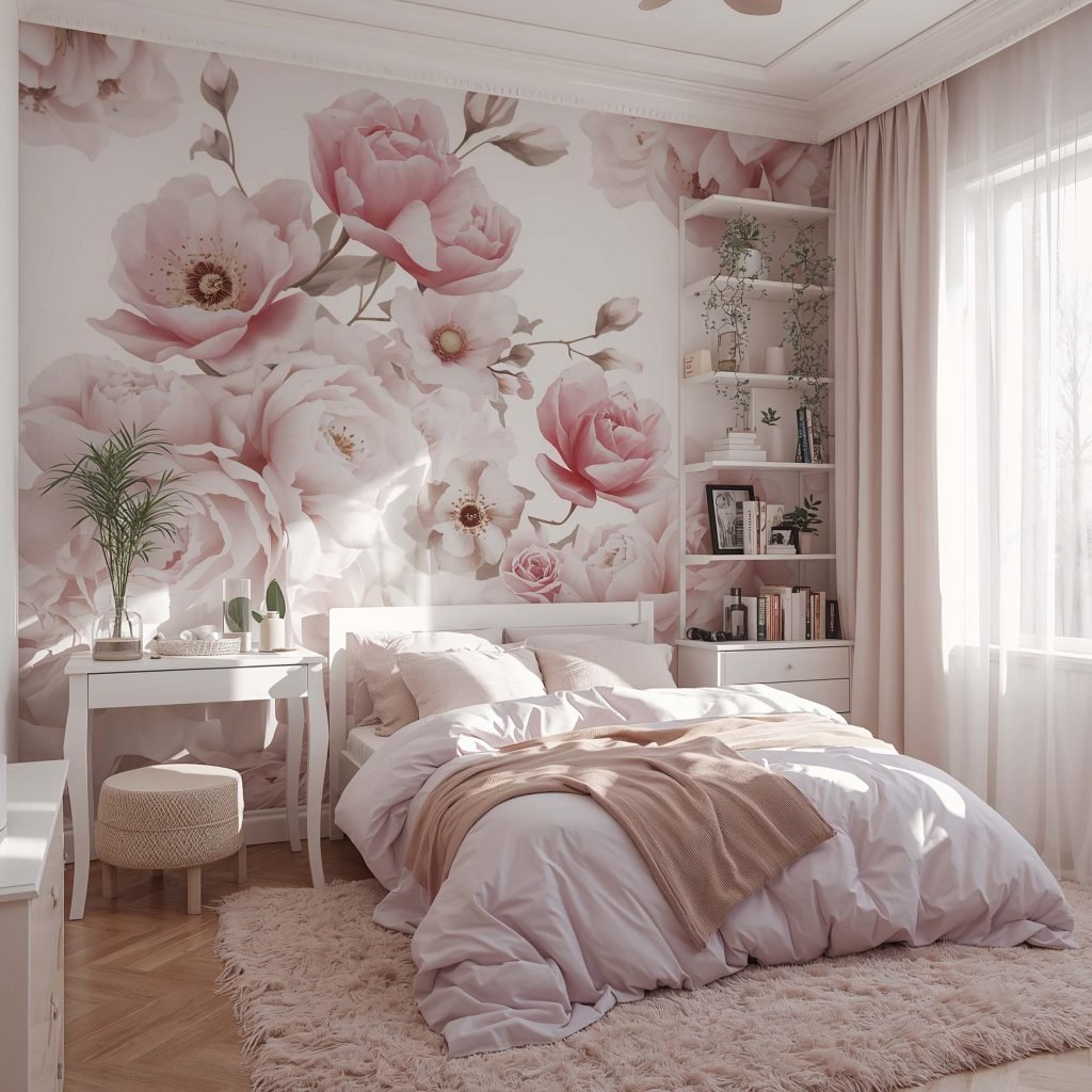 I personally went with a single accent wall behind my bed using peel-and-stick wallpaper (because who has time for actual wallpaper paste?). Large-scale florals work better than tiny, busy patterns – think oversized peonies or abstract botanical prints rather than grandma’s rose garden.