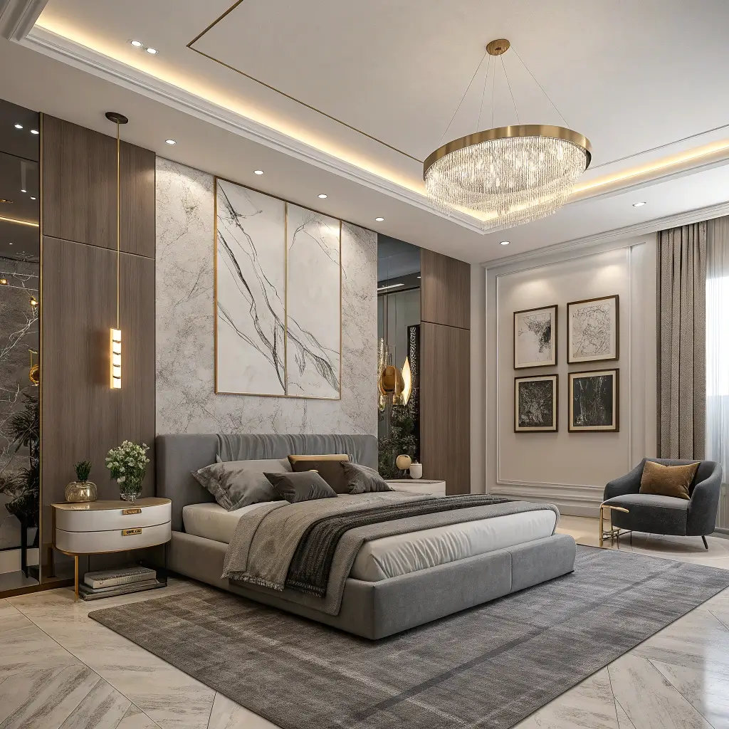 Modern Chic Gray and Beige Master Suite