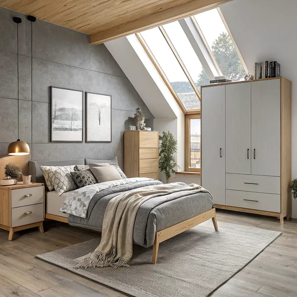 Scandinavian Style Gray and Beige Bedroom