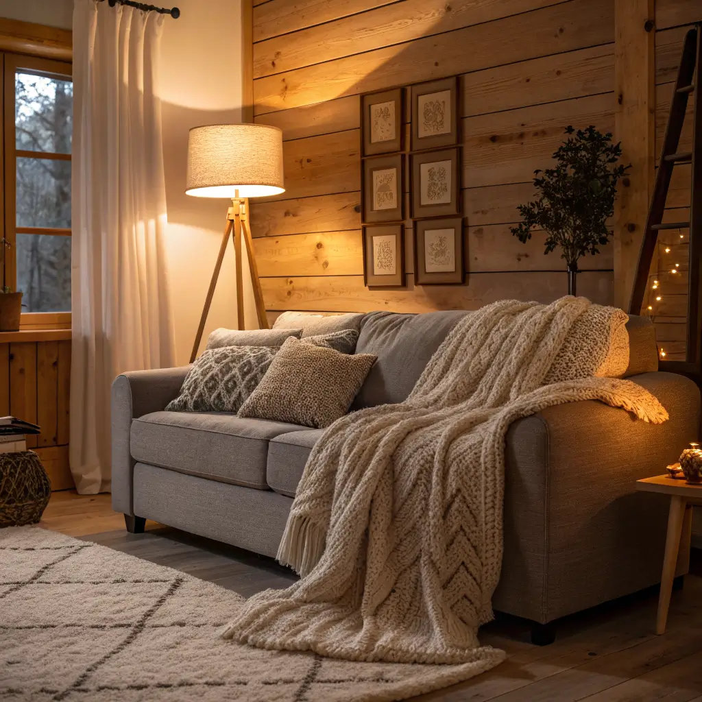 Who says gray has to feel cold? Creating a cozy atmosphere with a gray couch just requires the right supporting cast. I’m talking about warm wood tones, soft throws, and lighting that makes everyone look good (because let’s be honest, that matters).