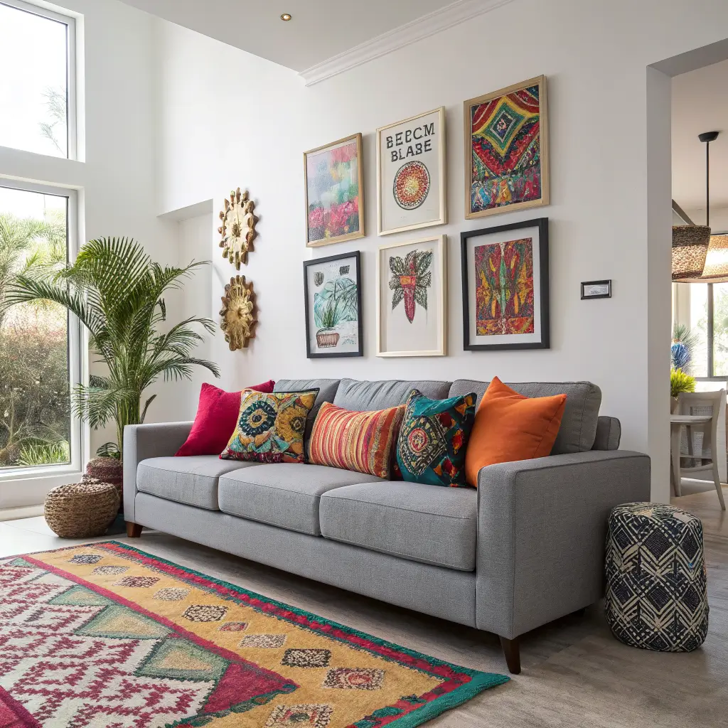Boho essentials for gray couches: