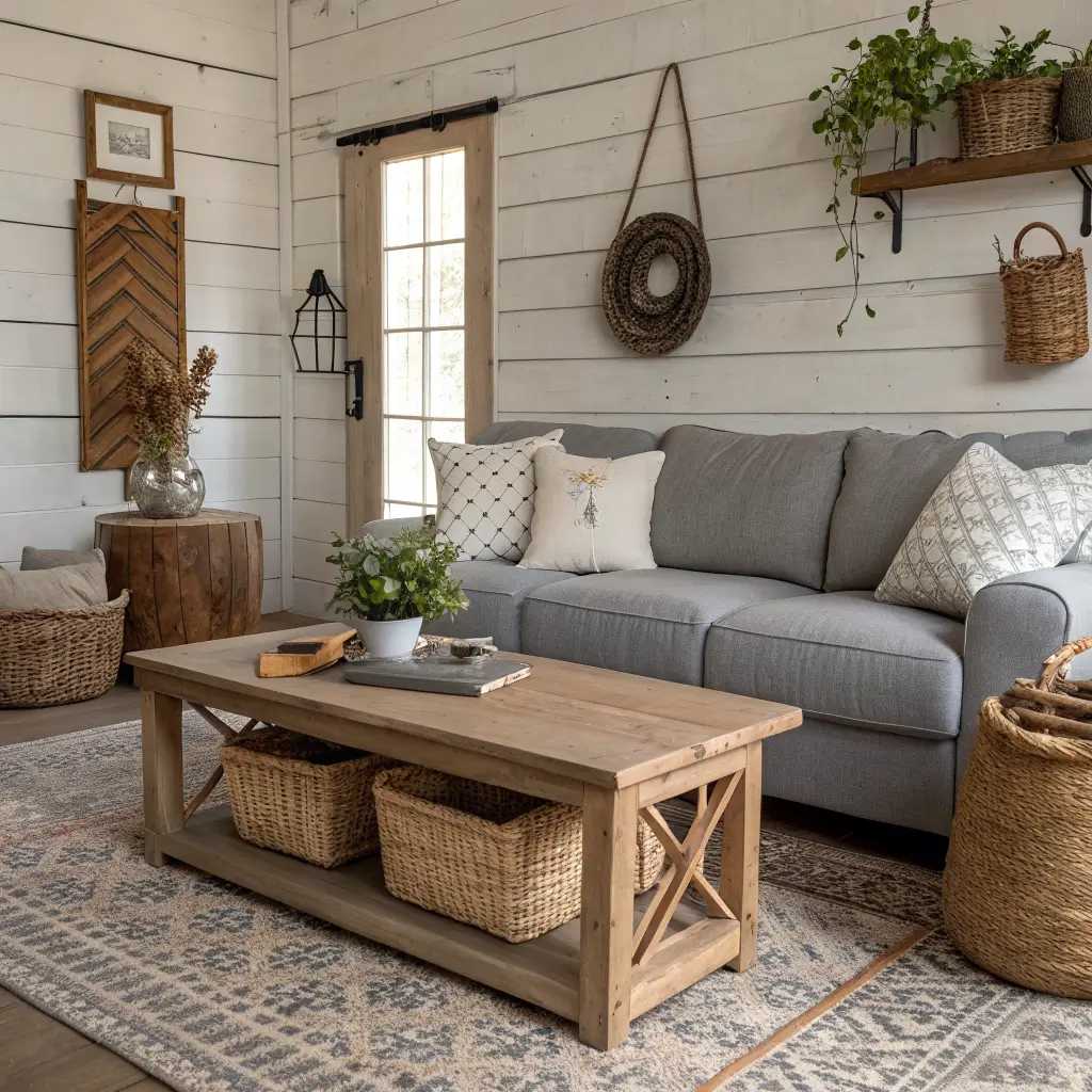 My cousin transformed her suburban living room into a farmhouse paradise with just a gray couch, some DIY shiplap, and a few thrift store finds. Cost her less than $500 total, and it looks like something from HGTV.