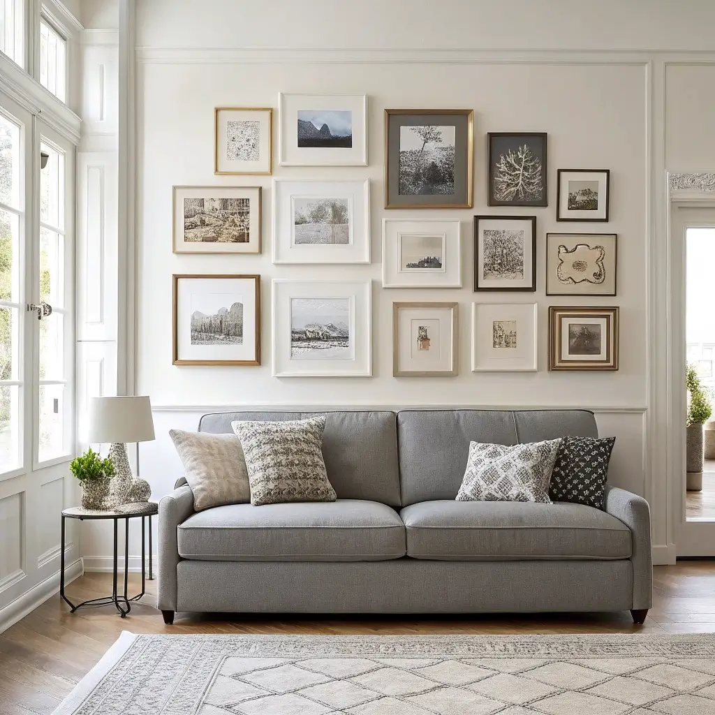 Gray Couch With Gallery Wall Design