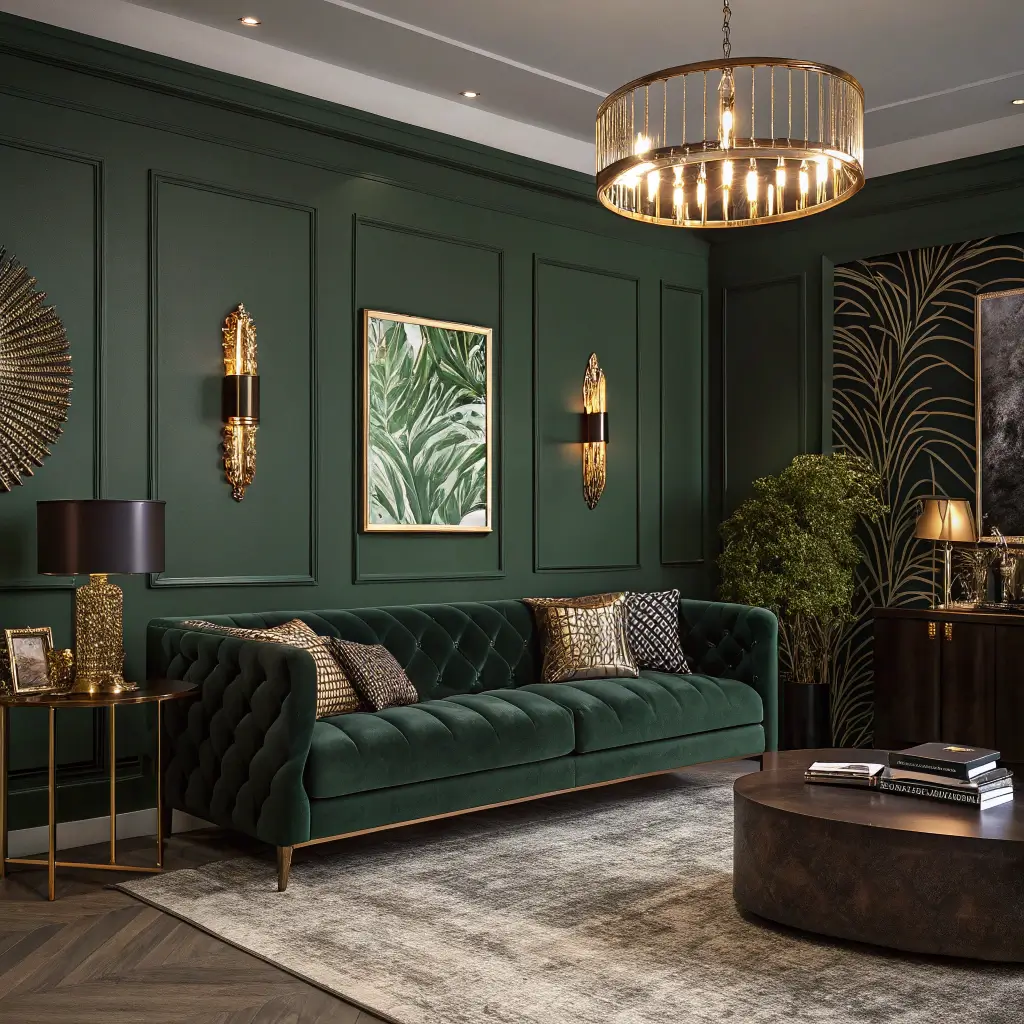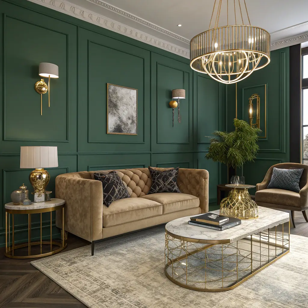 When I designed my friend’s living room with this combo, we went for a deep teal-green (think British racing green but moodier) and added gold picture frames, lamp bases, and throw pillow details. The result felt like something out of a boutique hotel. The contrast between the cool green and warm gold creates this balanced elegance that never gets old.