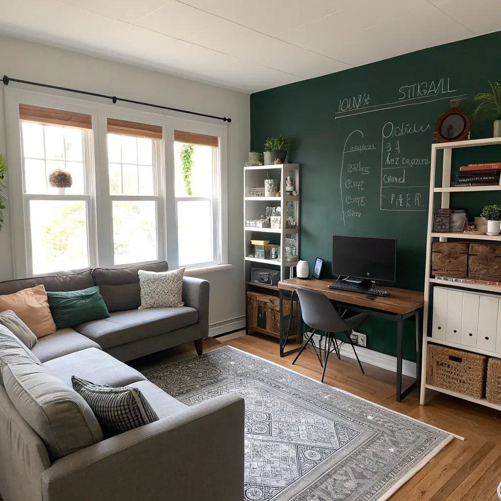 Chalkboard paint in green? Genius move. This gives you an accent wall that’s both beautiful and functional. Perfect for families, creatives, or anyone who likes to change things up regularly. You can write quotes, draw seasonal decorations, or let kids go wild (within reason).