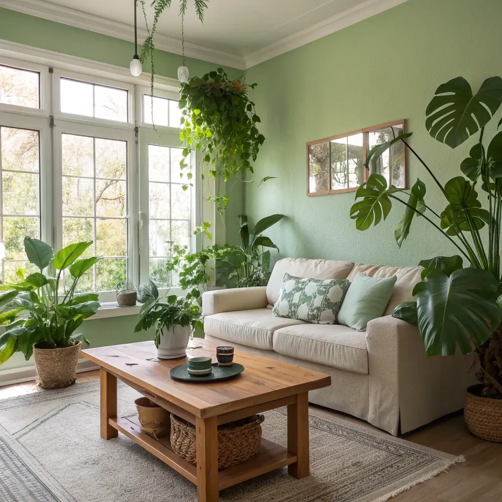 Nature-Inspired Green Accent Wall with Indoor Plants
