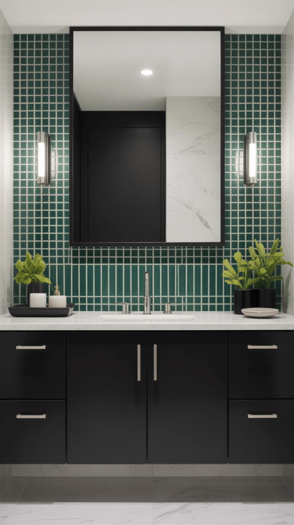Now, pair that with a black vanity underneath. This inverts the more common expectation and feels fresh and modern. The black vanity recedes, allowing the green tile to truly sing.