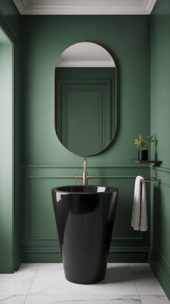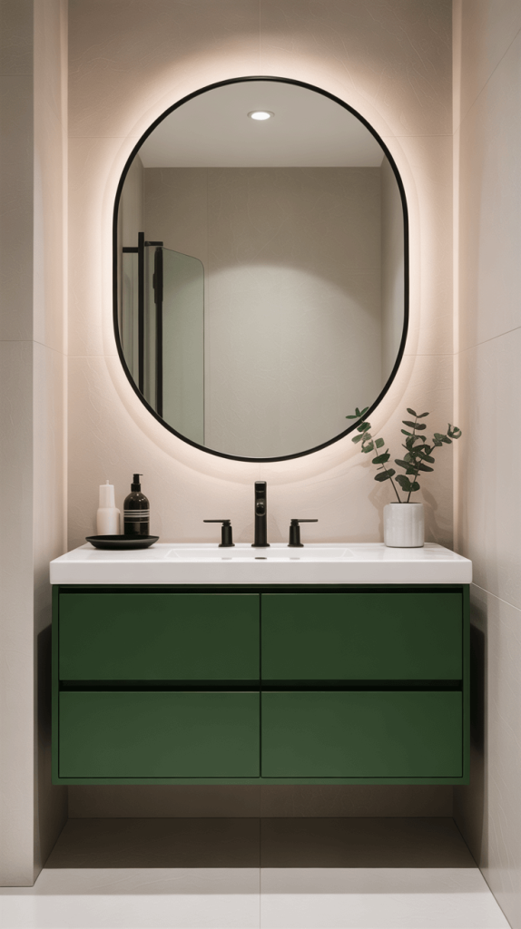 • Choosing Your Vanity Green: A sage green vanity feels calming and earthy. A dark hunter green feels scholarly and rich. A bold emerald feels glamorous and vibrant. What’s the vibe you’re going for?