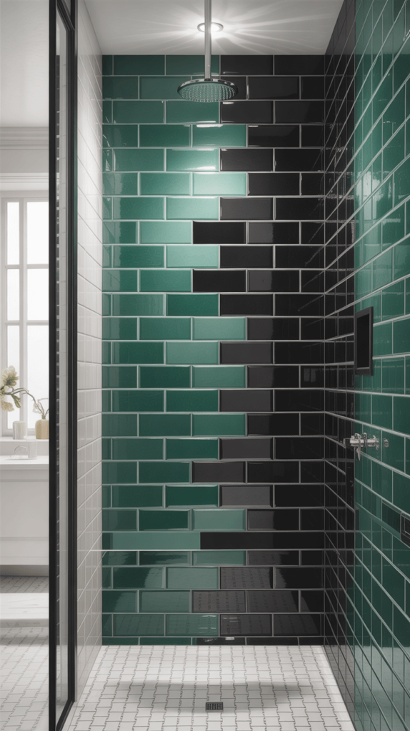 3. Green and Black Subway Tile Shower
