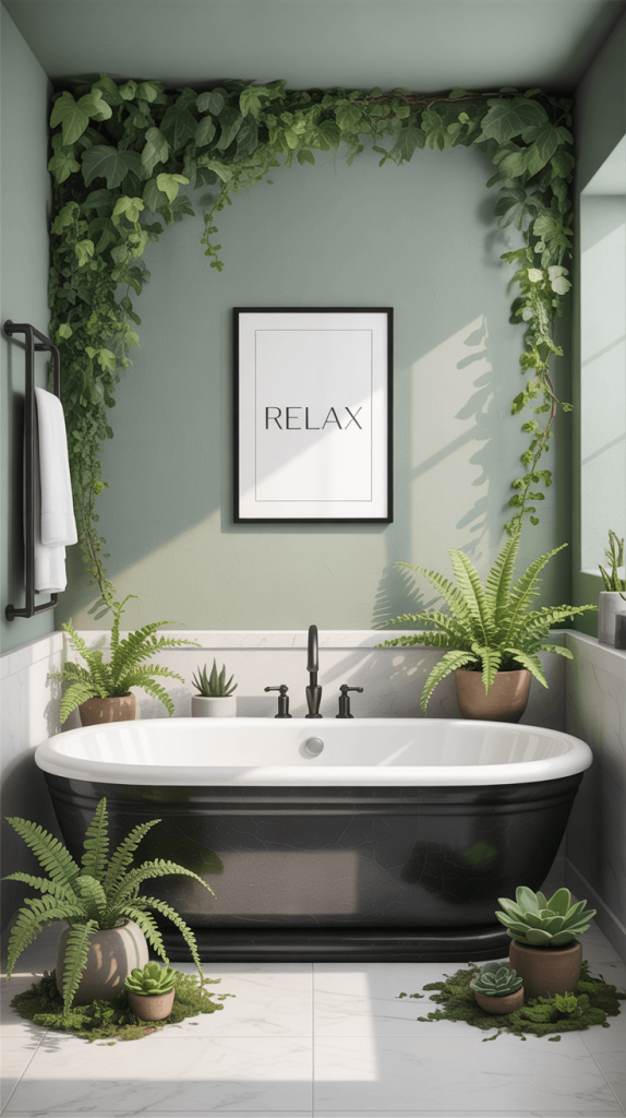 Real greenery in various shades and textures will make your chosen green paint or tile feel even more organic and natural.