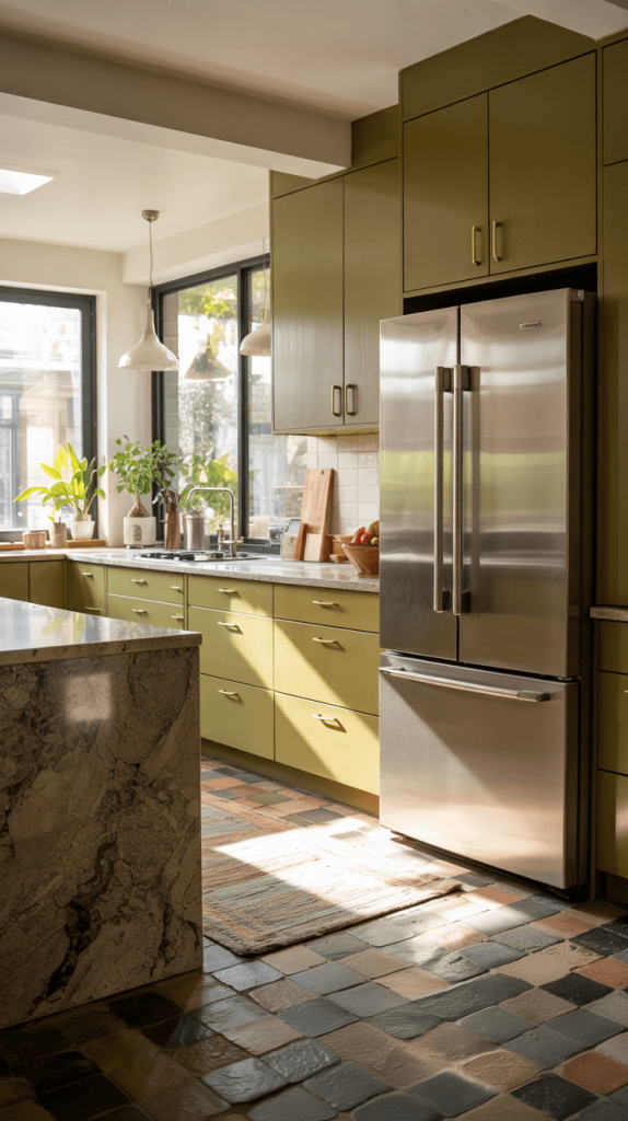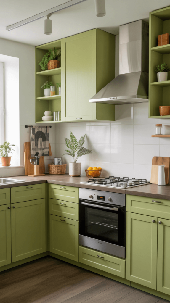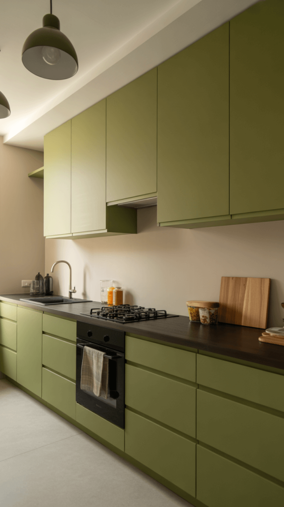 • Go for a Monochromatic Green: Choose a sophisticated, muted green for your cabinetry—think sage, olive, or a grey-green. The key here is a flat or satin finish; high-gloss can feel a bit too retro, while a matte finish screams modern.