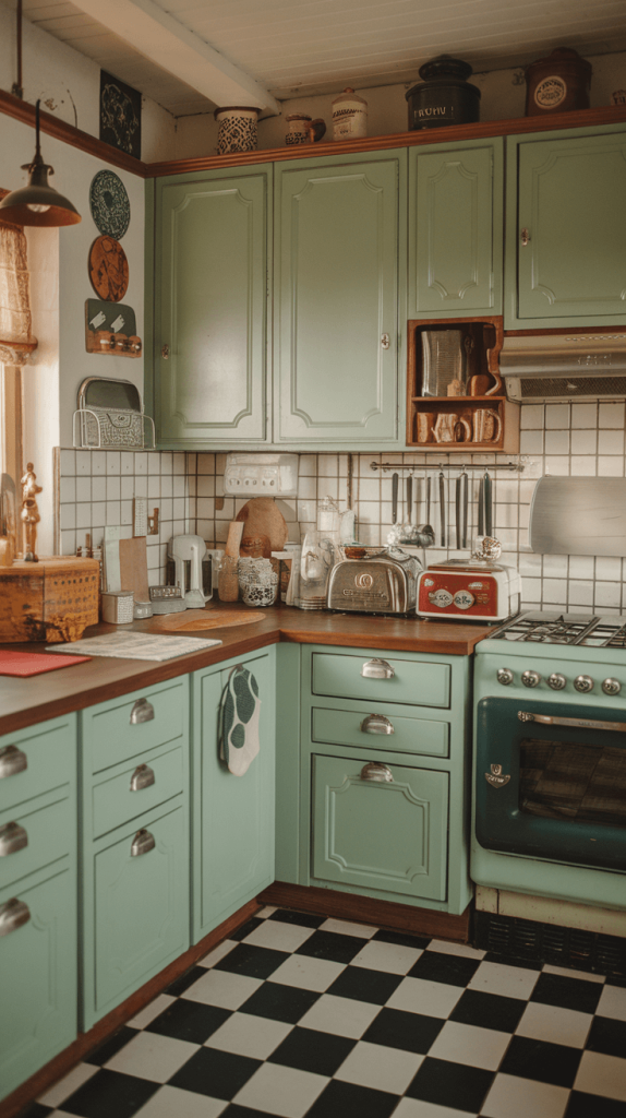 8. Vintage Green and Brown Kitchen Decor Ideas