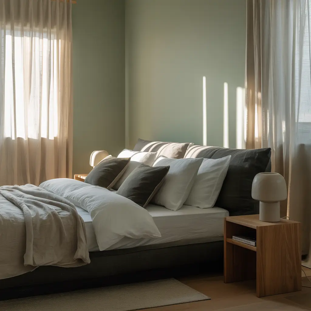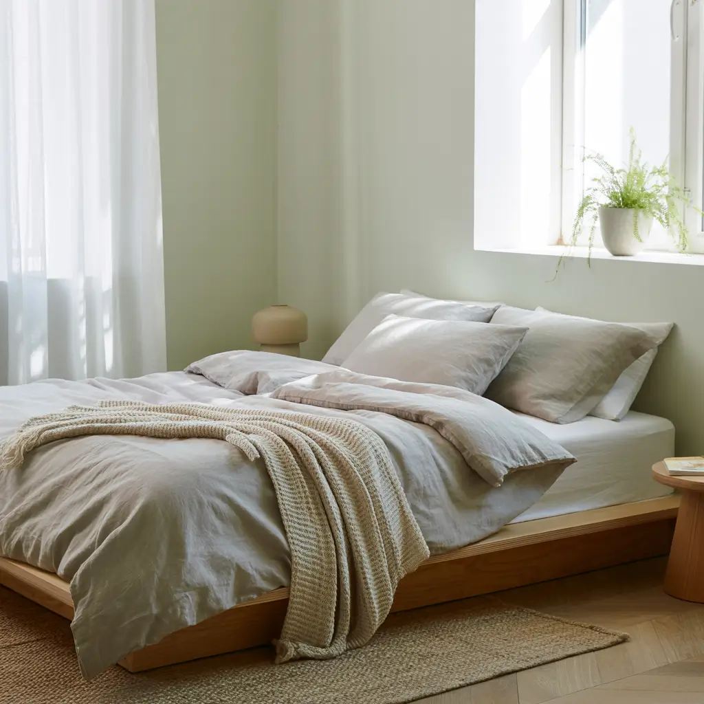 Want that Pinterest-worthy Scandinavian bedroom? Pastel green and dove grey deliver that hygge feeling without making your space look like an IKEA showroom exploded.