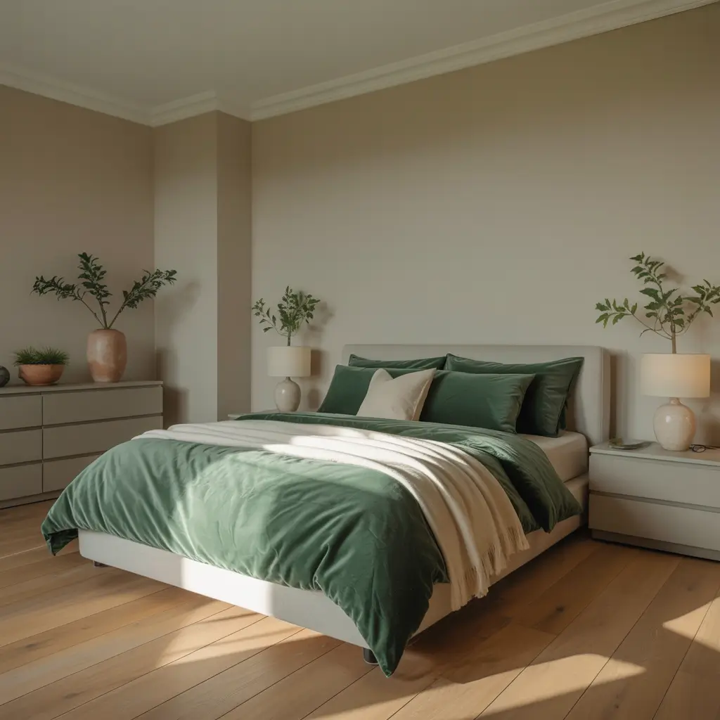 Now, if you’re feeling bold (and why shouldn’t you?), emerald green bedding against light grey furniture creates this ridiculously luxurious look. I’m talking hotel-suite-in-Paris vibes without the astronomical price tag.