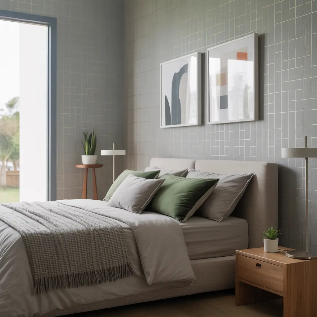 Geometric wallpaper scares people, but honestly? Grey geometric wallpaper with strategic green accents creates one of the most sophisticated looks you can achieve. And no, it won’t make your room look smaller – that’s a myth that needs to die.